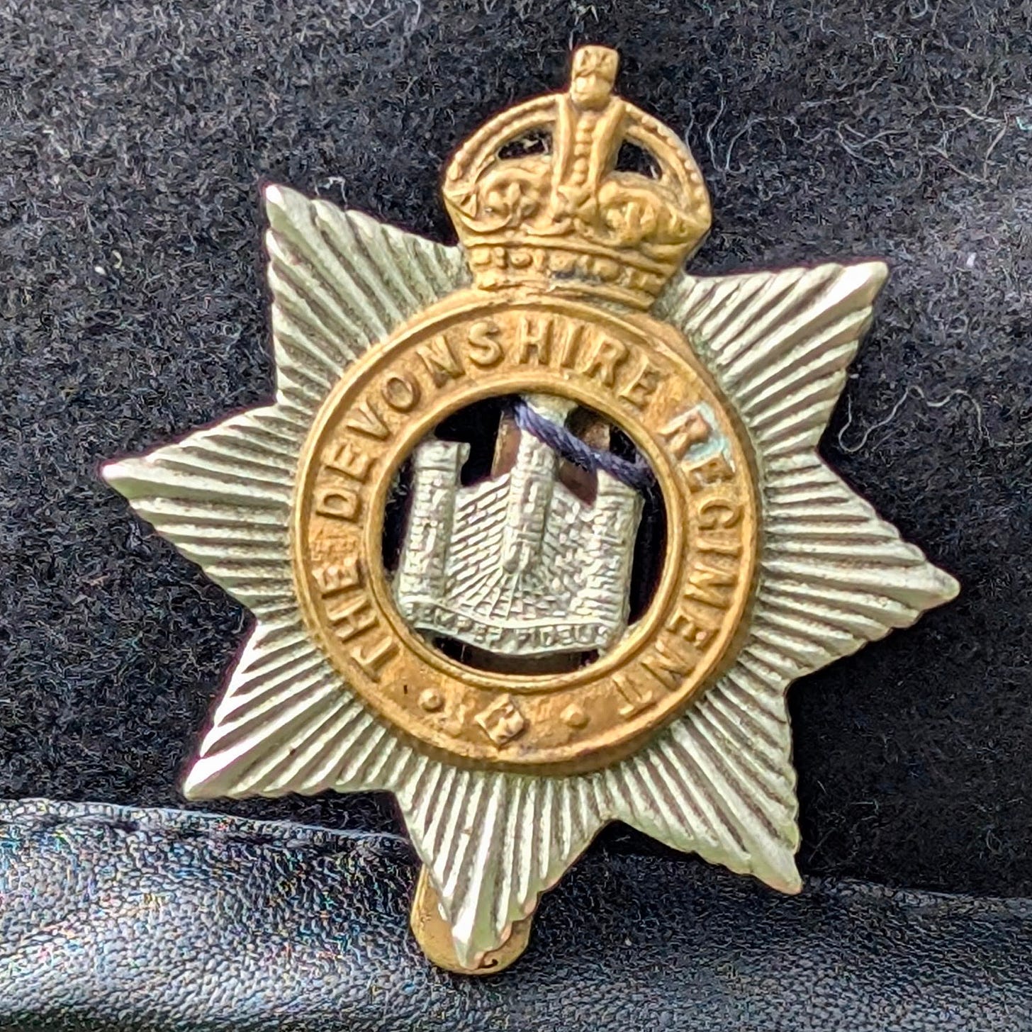 In the last newsletter I mentioned the VE Day celebrations in our village, but I neglected to mention that one person was wearing a beret and badge from a relative who’d done National Service. I noticed the badge was from the Devonshire Regiment which no longer exists, but it is referred to in A Study in Stone: the very book I’d been working on that day.